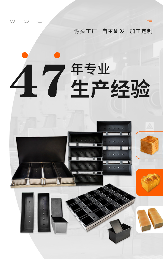 主要產(chǎn)品:鋁合金一體成型蛋糕模具,冷軋板沖壓不粘蛋糕、面包模具,鍍鋁板不粘蛋糕、面包模具,不銹鋼烤盤模具,各種規(guī)格吐司、法棍、漢堡、平盤產(chǎn)品,以及多類型食品機械等。為更精準(zhǔn)地滿足市場需求,企業(yè)依托自身優(yōu)勢,為廣大合作伙伴提供產(chǎn)品個性化訂制服務(wù)。